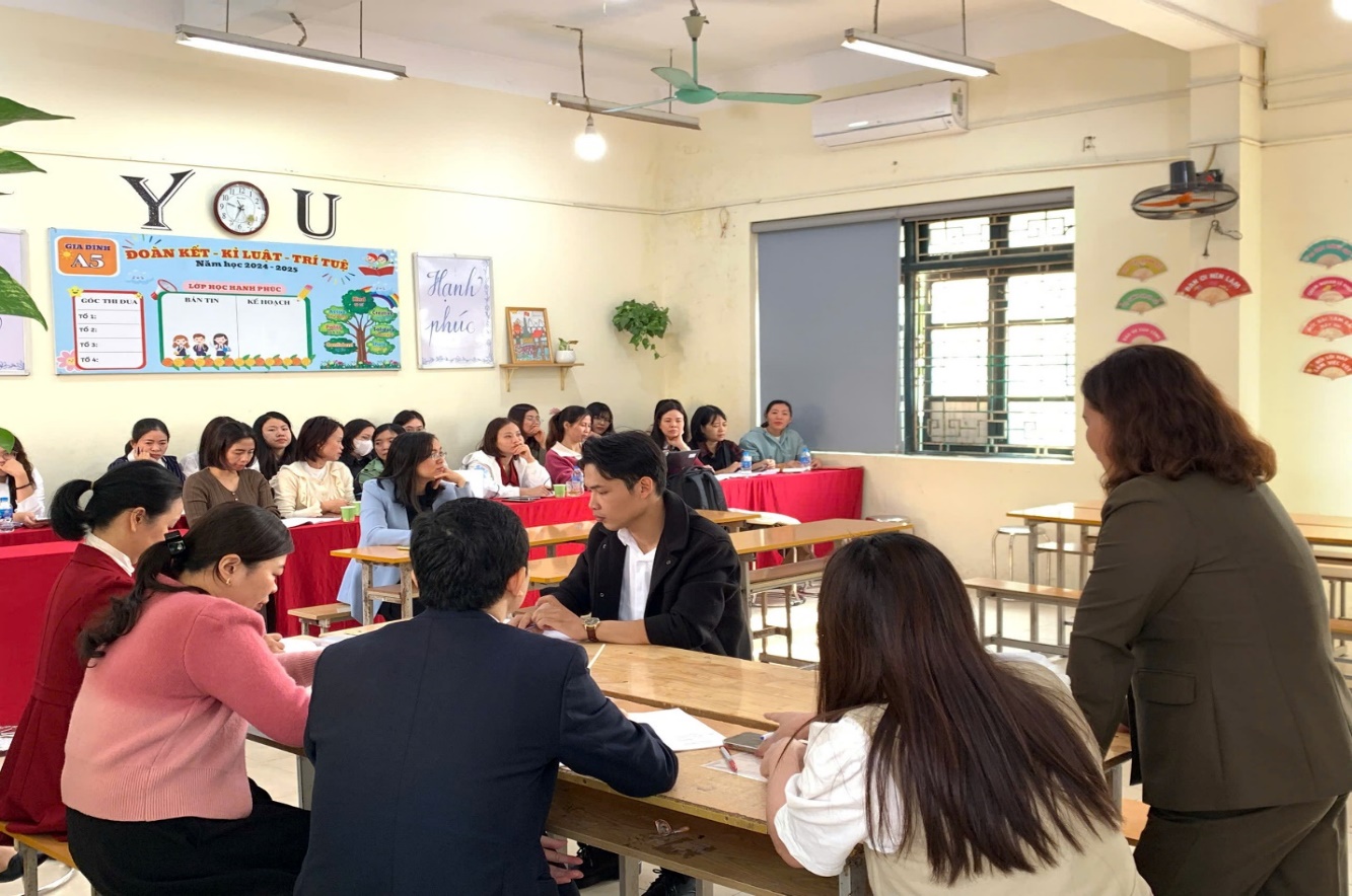 Tới dự tiết chuyên đề có toàn thể các đ/c giáo viên dạy môn Giáo dục công dân trong quận Hà Đông, Ban giám hiệu và các thầy cô giáo trong tổ khoa học xã hội của nhà trường. Các thầy cô giáo về dự giờ thăm lớp đã quan tâm động viên góp ý, sôi nổi chia sẻ kinh nghiệm để việc dạy học phát triển phẩm chất và năng lực học sinh trong môn GDCD lớp 9 đạt hiệu quả hơn.