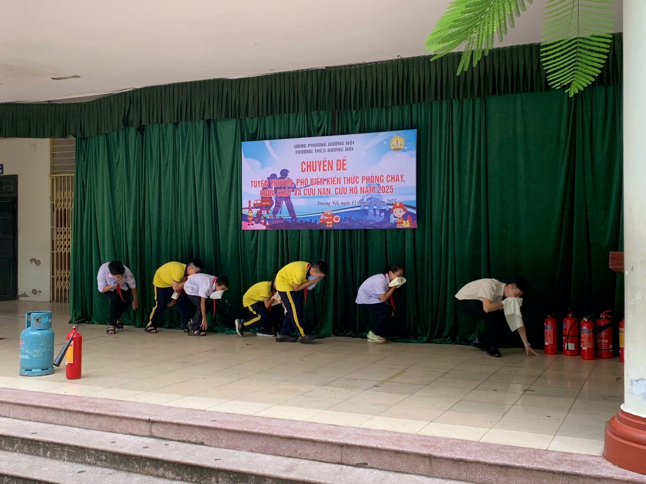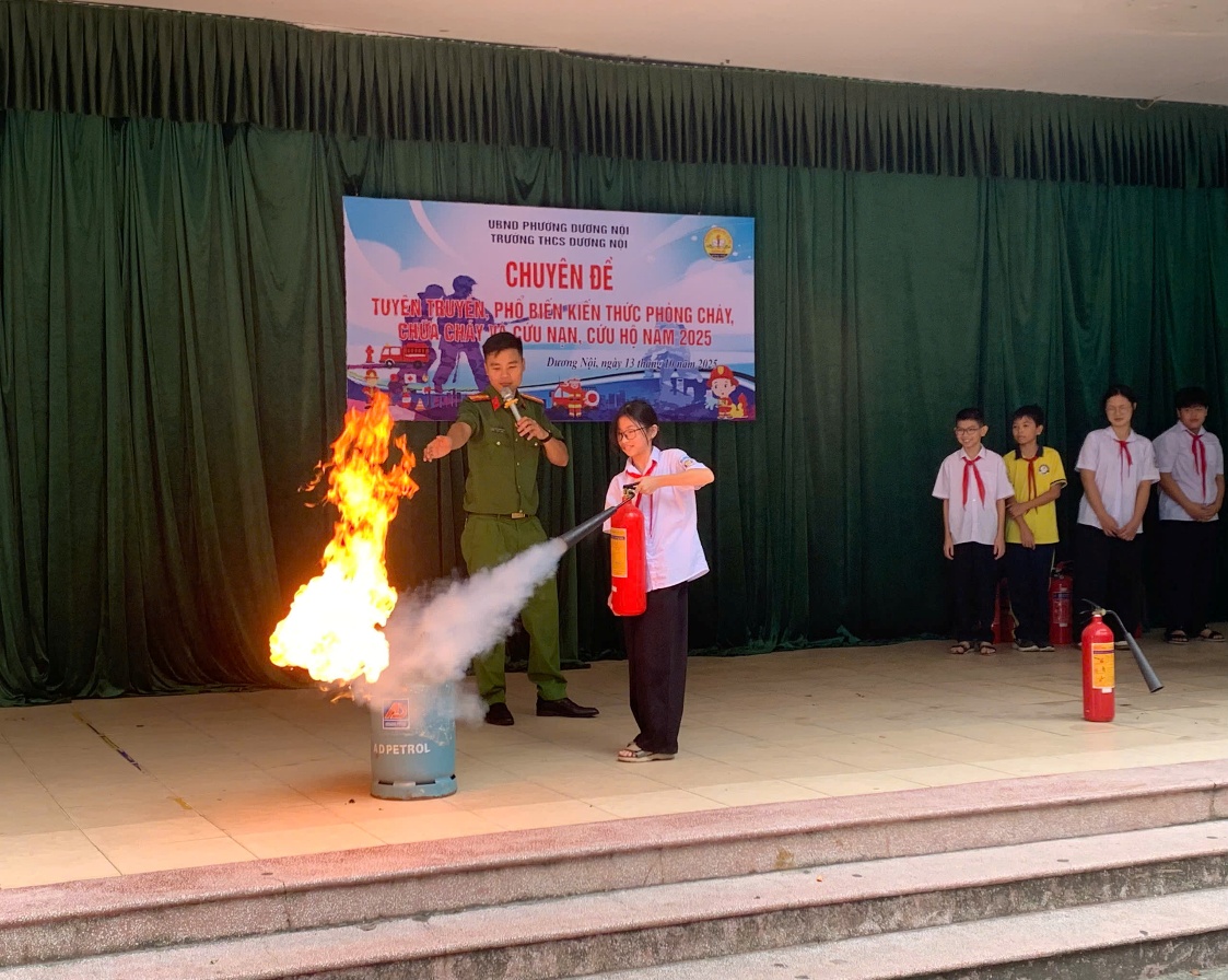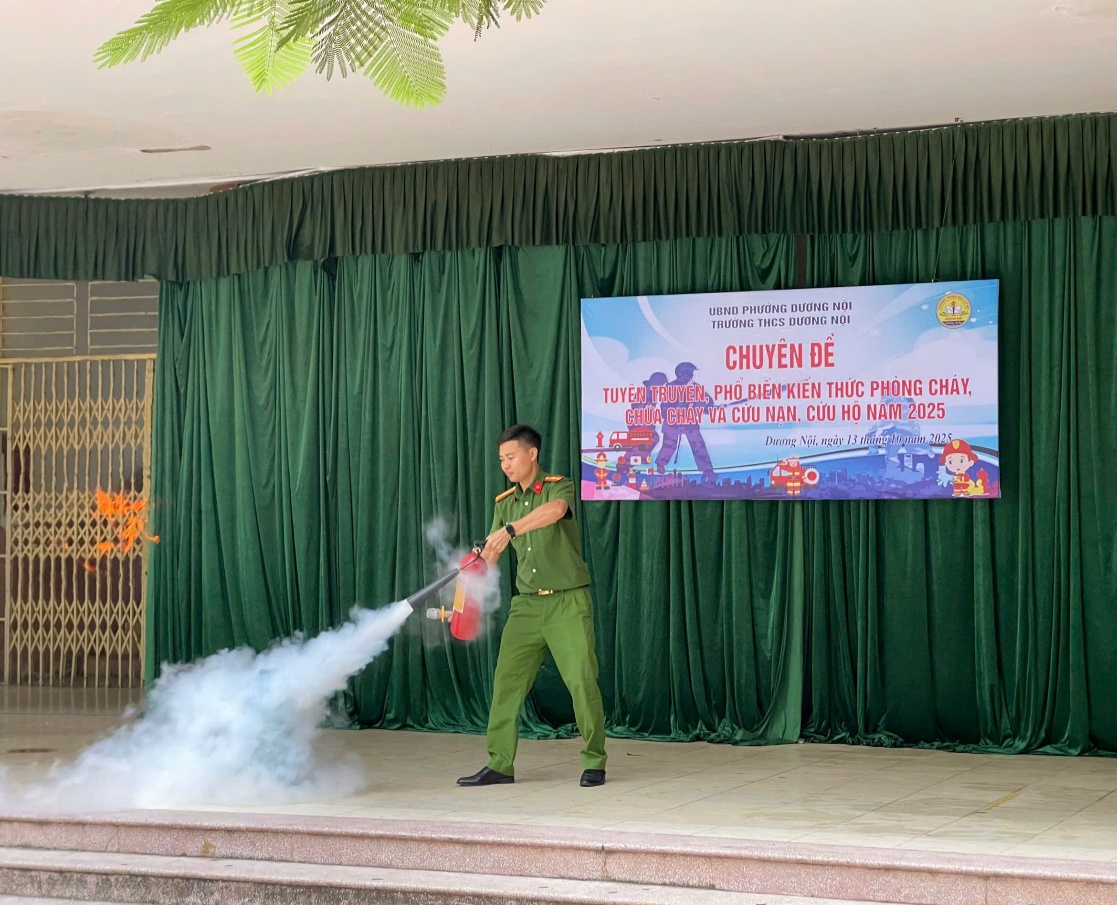 Ngày 13/10/2025, không khí tại trường THCS Dương Nội trở nên sôi động và đầy hào hứng khi toàn thể học sinh, giáo viên và cán bộ nhà trường cùng tham gia buổi thực hành Phòng cháy chữa cháy (PCCC) – một hoạt động thiết thực và đầy ý nghĩa nhằm nâng cao nhận thức và kỹ năng xử lý tình huống khẩn cấp trong môi trường học đường.