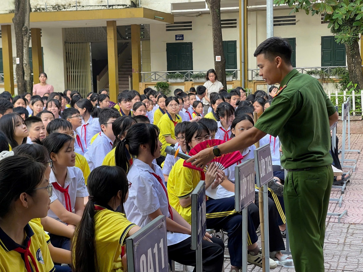 Buổi học không đơn thuần là lý thuyết khô khan, mà là một trải nghiệm thực tế, sinh động, để lại nhiều ấn tượng mạnh mẽ trong lòng các em học sinh thông qua sự chia sẻ bổ ích từ Thiếu tá Nguyễn Thanh Tùng - Cán bộ Phòng Cảnh sát PCCC - CHCN thành phố Hà Nội.