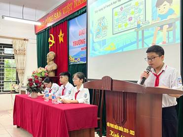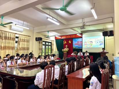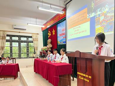 Mở đầu chương trình, các đại biểu và đội viên đã cùng ôn lại truyền thống vẻ vang của Đội Thiếu niên Tiền phong Hồ Chí Minh – một tổ chức luôn đồng hành cùng thế hệ trẻ trong học tập, rèn luyện và phát triển toàn diện. Bản báo cáo tổng kết hoạt động Liên đội năm học vừa qua đã khẳng định nhiều thành tích nổi bật trong các phong trào thi đua, các cuộc thi và các hoạt động xã hội do nhà trường và Đội tổ chức.