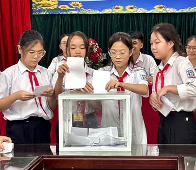 Trong không khí dân chủ, nghiêm túc, Đại hội đã tiến hành bầu cử Ban chỉ huy Liên đội nhiệm kỳ 2025-2026. Những gương mặt tiêu biểu, có năng lực và tinh thần trách nhiệm được tín nhiệm bầu chọn để dẫn dắt phong trào Đội trong năm học mới. Ban chỉ huy Liên đội mới cam kết sẽ phát huy tinh thần sáng tạo, đoàn kết, không ngừng đổi mới các hoạt động, góp phần xây dựng một môi trường học tập tích cực, thân thiện cho tất cả các bạn đội viên.