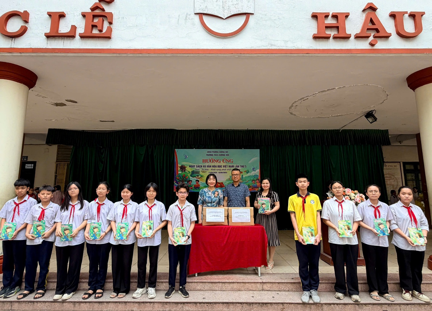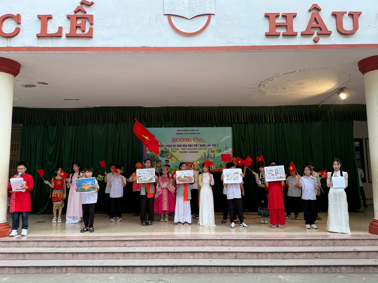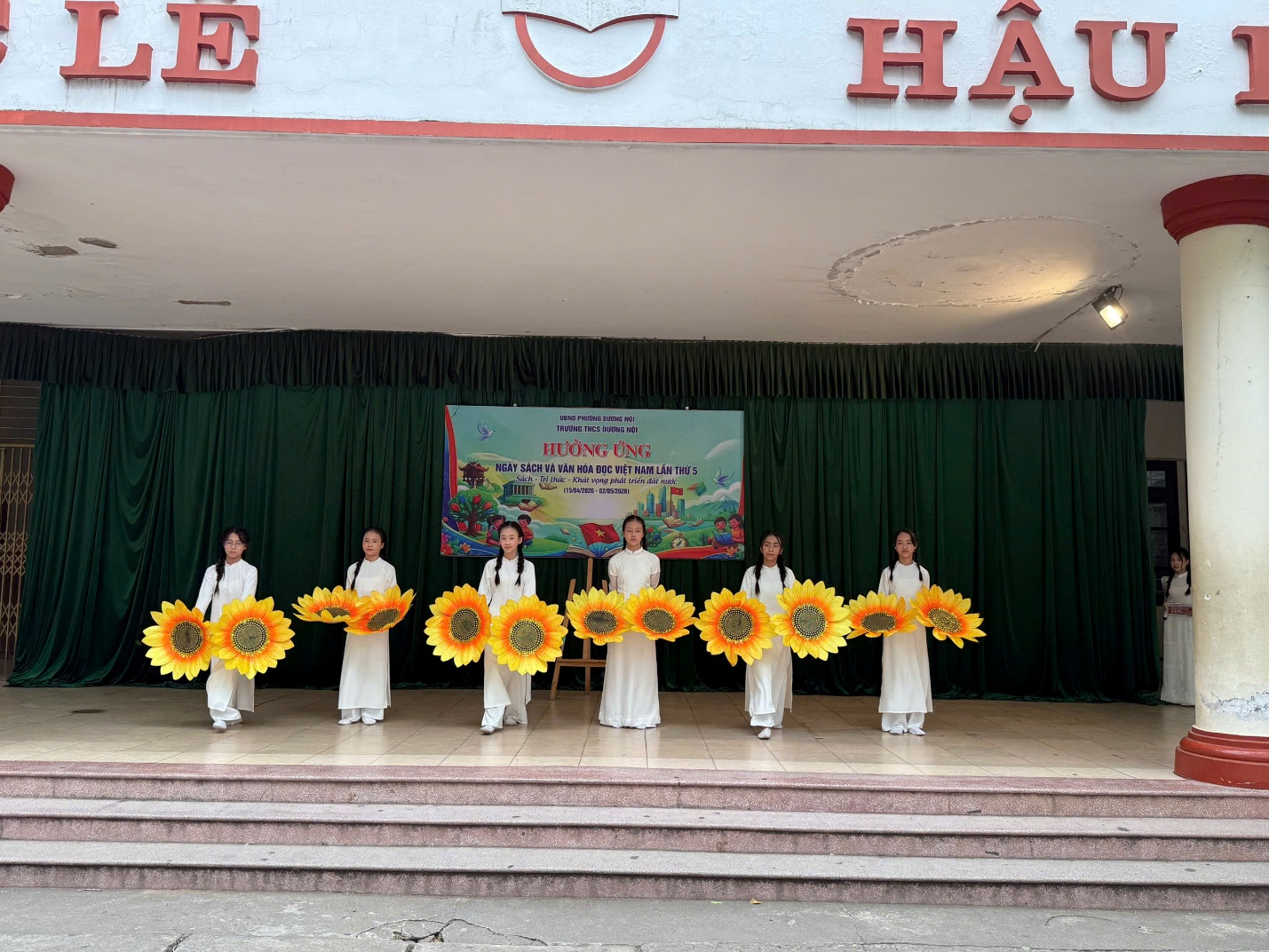 HƯỞNG ỨNG NGÀY SÁCH VÀ VĂN HÓA ĐỌC VIỆT NAM LẦN THỨ 5 Hòa chung không khí hào hùng của tháng Tư lịch sử – tháng của những dấu mốc trọng đại của dân tộc, Trường THCS Dương Nội đã tích cực hưởng ứng Ngày Sách và Văn hóa đọc Việt Nam (21/4) bằng chuỗi hoạt động phong phú, thiết thực và đầy ý nghĩa. Với chủ đề “Sách – Tri thức – Khát vọng phát triển đất nước”, phong trào đã thực sự trở thành điểm nhấn nổi bật, lan tỏa mạnh mẽ tình yêu sách trong toàn thể học sinh. Sách từ lâu đã là người bạn đồng hành không thể thiếu trong hành trình học tập và trưởng thành của mỗi học sinh. Mỗi trang sách không chỉ mở ra những chân trời tri thức mới mà còn nuôi dưỡng tâm hồn, bồi đắp nhân cách và khơi dậy những ước mơ, hoài bão đẹp đẽ.Từ những giá trị đó, việc đọc sách không còn dừng lại ở tiếp nhận kiến thức mà còn trở thành nguồn cảm hứng để học sinh sáng tạo, thể hiện suy nghĩ và cảm nhận của mình theo nhiều hình thức phong phú. Chính điều này đã được thể hiện rõ nét trong các hoạt động hưởng ứng Ngày Sách tại nhà trường. Mở đầu cho chuỗi hoạt động sôi nổi ấy, học sinh khối 6 đã mang đến những phần thi giới thiệu sách bằng hình thức sân khấu hóa đầy màu sắc và hấp dẫn. Nhiều lớp thể hiện sự đầu tư công phu từ khâu lựa chọn tác phẩm phù hợp, xây dựng kịch bản chặt chẽ đến chuẩn bị trang phục, đạo cụ và tổ chức biểu diễn.Các tiết mục không chỉ dừng lại ở việc kể lại nội dung sách mà còn biết sáng tạo trong cách thể hiện, kết hợp hài hòa giữa lời thoại, diễn xuất và âm nhạc. Nhờ đó, nội dung tác phẩm được tái hiện một cách sinh động, gần gũi, giúp người xem dễ dàng cảm nhận và hiểu rõ hơn giá trị của cuốn sách, đồng thời truyền tải những thông điệp ý nghĩa một cách tự nhiên, sâu sắc. Tiếp nối mạch cảm hứng từ hoạt động của khối 6, khối 7đã mang đến một màu sắc hoàn toàn khác với hội thi xếp sách nghệ thuật giàu tính sáng tạo. Từ những cuốn sách quen thuộc, các lớp đã khéo léo sắp đặt, tạo hình thành những mô hình độc đáo, thể hiện rõ ý tưởng và thông điệp mà tập thể muốn gửi gắm.Điểm nổi bật của phần thi không chỉ nằm ở sự chắc chắn trong kết cấu hay tính thẩm mỹ của sản phẩm, mà còn ở cách các em “thổi hồn” vào từng mô hình thông qua nội dung gắn với tri thức, ước mơ và cuộc sống. Qua đây, mỗi sản phẩm không chỉ là một hình thức trưng bày mà còn trở thành một câu chuyện có ý nghĩa. Bên cạnh đó, phần thuyết trình đã góp phần hoàn thiện giá trị của sản phẩm. Nhiều học sinh thể hiện phong thái tự tin, diễn đạt rõ ràng, biết dẫn dắt người nghe theo mạch ý tưởng của mình, từ đó tạo nên sức thuyết phục và dấu ấn riêng cho từng tập thể lớp. Không chỉ dừng lại ở đó, khối 8 tiếp tục góp phần làm phong phú phong trào bằng phần thi xây dựng video cảm nhận về sách. Nhiều sản phẩm được đầu tư sáng tạo, kết hợp tốt giữa nội dung và hình thức thể hiện.Các video không chỉ giới thiệu cuốn sách mà còn thể hiện cảm nhận riêng của học sinh, góp phần làm nổi bật giá trị của tác phẩm. Qua hoạt động này, học sinh được rèn luyện kỹ năng trình bày, ứng dụng công nghệ và nuôi dưỡng tình yêu đối với việc đọc sách. Khép lại chuỗi hoạt động với nhiều dấu ấn ý nghĩa, học sinh khối 9 đã lan tỏa tinh thần nhân văn qua hoạt động quyên góp sách với thông điệp “Trao tri thức – Gửi yêu thương”. Phong trào nhận được sự hưởng ứng tích cực, với số lượng sách phong phú, đa dạng về thể loại và đảm bảo chất lượng.Đáng trân trọng là nhiều học sinh đã chủ động lựa chọn những cuốn sách còn mới, có giá trị để đóng góp, thể hiện tinh thần tự giác và ý thức sẻ chia. Qua đó, hoạt động không chỉ góp phần làm phong phú nguồn sách cho thư viện mà còn lan tỏa tình yêu tri thức và bồi dưỡng lòng nhân ái trong học sinh. Trong không khí hưởng ứng Ngày Sách và Văn hóa đọc Việt Nam lần thứ 5, Trường THCS Dương Nội vinh dự nhận được sự quan tâm, đồng hành từ các đơn vị xuất bản và nghiên cứu giáo dục.Nhà trường đã đón nhận món quà ý nghĩa là những đầu sách do Nhà xuất bản Giáo dục Việt Nam trao tặng. Buổi trao tặng có sự tham gia của ông Phùng Quảng Sơn – cán bộ Viện Nghiên cứu Sách và Học liệu giáo dục và cô Nguyễn Thị Hải Yến – Bí thư chi bộ, Hiệu trưởng nhà trường. Đây không chỉ là nguồn tài liệu học tập quý giá, góp phần làm phong phú thêm thư viện mà còn là món quà tinh thần thiết thực, khơi dậy niềm đam mê đọc sách và ý thức tự học trong học sinh, góp phần lan tỏa tình yêu sách và tri thức trong môi trường học đường. Có thể khẳng định rằng, phong trào hưởng ứng Ngày Sách và Văn hóa đọc Việt Nam lần thứ 5 tại Trường THCS Dương Nội đã diễn ra th