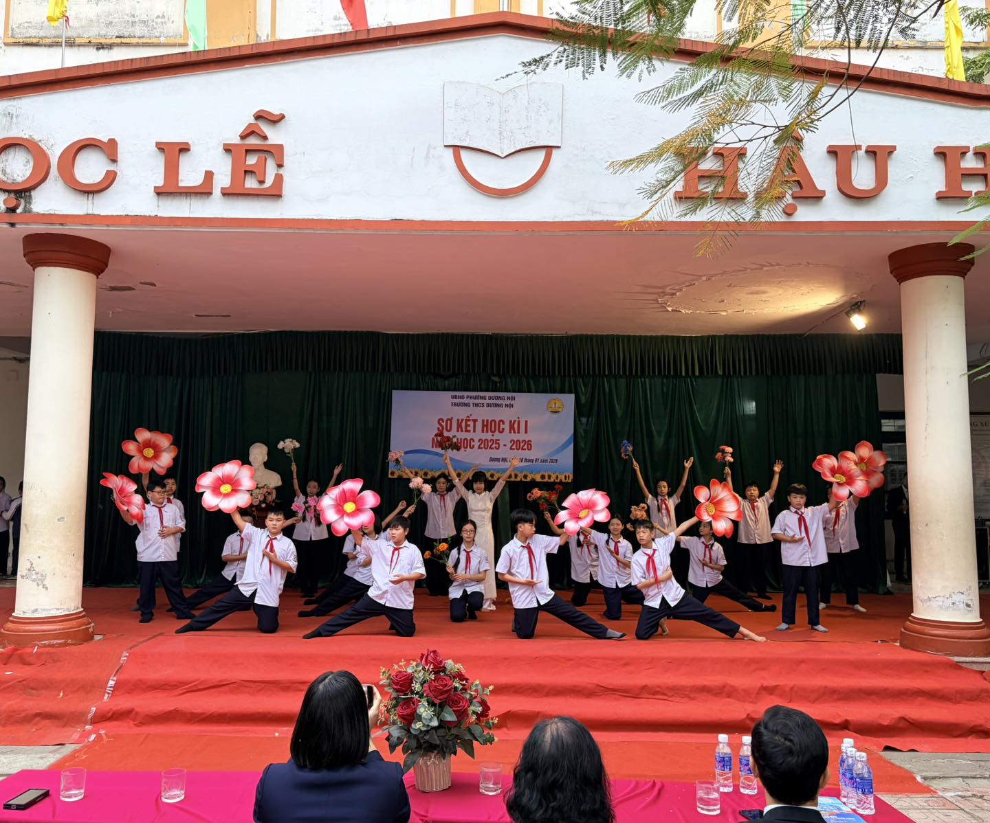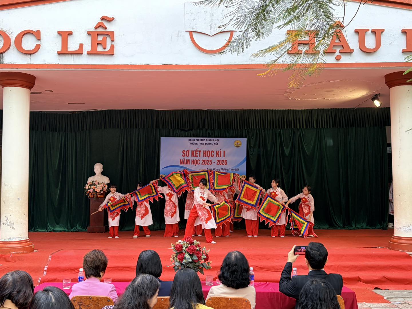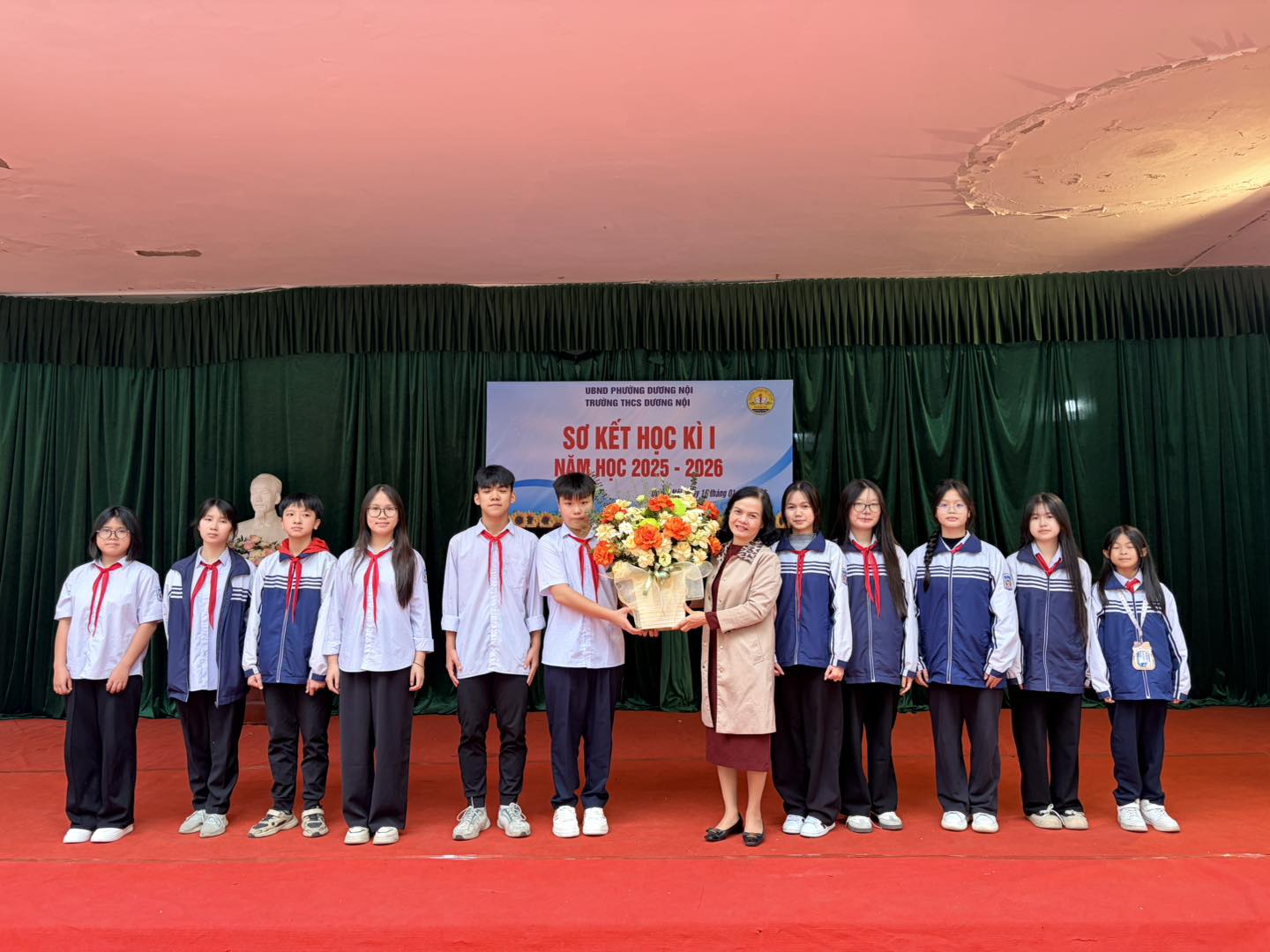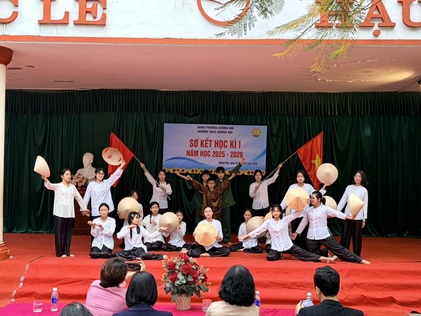 Buổi lễ được tổ chức trang trọng, nghiêm túc, đúng kế hoạch với các nội dung: văn nghệ chào mừng, báo cáo sơ kết học kỳ I, tuyên dương – khen thưởng các tập thể tiêu biểu. Chương trình văn nghệ chào mừng do học sinh nhà trường biểu diễn được chuẩn bị chu đáo, với nhiều tiết mục đa dạng về thể loại, nội dung ca ngợi mái trường, thầy cô, bạn bè và tinh thần học tập, rèn luyện của học sinh. Các tiết mục diễn ra sôi nổi, hào hứng, góp phần tạo không khí phấn khởi cho buổi lễ, đồng thời thể hiện tinh thần đoàn kết, sự tự tin, năng động và khả năng sáng tạo của học sinh Trường THCS Dương Nội.