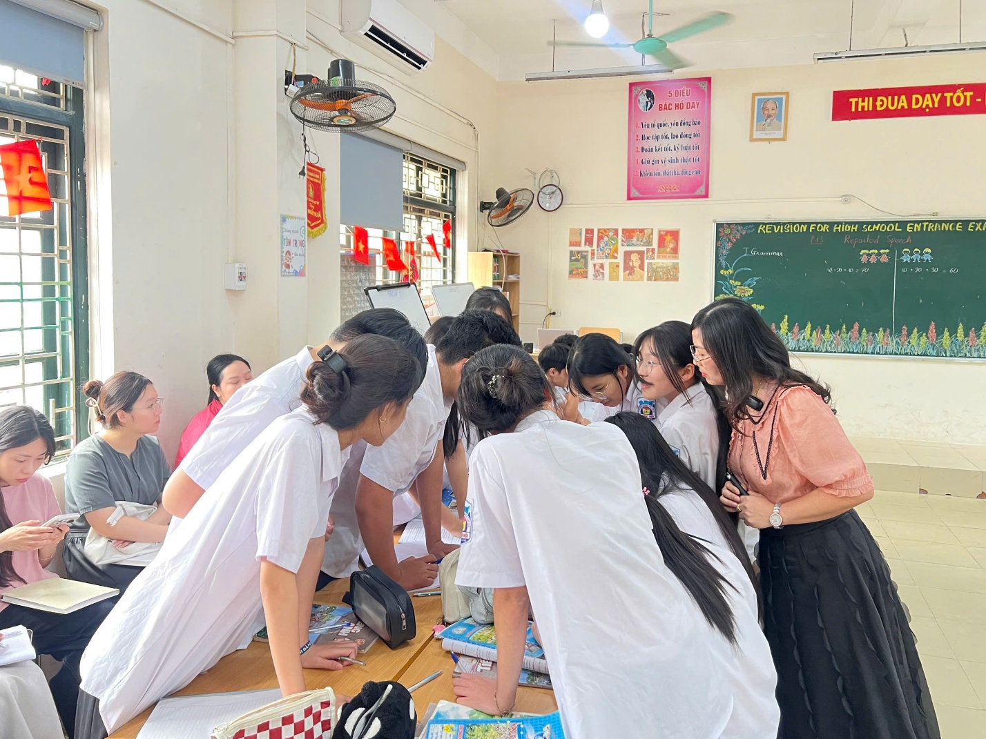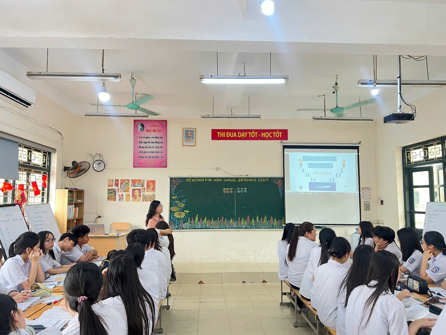 REVISION FOR HIGH SCHOOL ENTRANCE EXAM – ENGLISH 9 Nhằm nâng cao chất lượng dạy và học môn Tiếng Anh, đồng thời hỗ trợ học sinh lớp 9 củng cố kiến thức, tự tin bước vào kỳ thi tuyển sinh vào lớp 10, nhà trường đã tổ chức chuyên đề Reported Speech(Câu tường thuật) với sự hướng dẫn trực tiếp của cô giáo Nguyễn Hồng Thu giàu kinh nghiệm và tâm huyết. Mở đầu buổi học, cô giáo đã giúp học sinh hệ thống lại kiến thức nền tảng một cách logic và dễ hiểu. Các nội dung như cách chuyển đổi từ câu trực tiếp sang câu gián tiếp, quy tắc lùi thì, sự thay đổi của đại từ nhân xưng,… được trình bày rõ ràng, có sơ đồ minh họa cụ thể. Nhờ cách giảng giải mạch lạc, học sinh không chỉ ghi nhớ kiến thức mà còn hiểu được bản chất của từng quy tắc. Không dừng lại ở lý thuyết, cô giáo đặc biệt chú trọng đến việc rèn luyện kỹ năng thông qua các hoạt động thực hành đa dạng. Học sinh được tham gia làm việc nhóm, thảo luận và xử lí các tình huống giao tiếp thực tế, từ đó vận dụng cấu trúc câu tường thuật một cách linh hoạt. Những bài tập được thiết kế theo mức độ từ cơ bản đến nâng cao với nhiều hình thức đa dạng giúp học sinh từng bước củng cố và mở rộng kiến thức. Trong suốt buổi chuyên đề, không khí lớp học diễn ra sôi nổi, tích cực. Cô giáo luôn khuyến khích học sinh đặt câu hỏi, chủ động phát biểu ý kiến và sửa lỗi trực tiếp ngay trên lớp. Qua đó, các em không chỉ khắc phục được những lỗi sai thường gặp mà còn hình thành tư duy sử dụng ngôn ngữ chính xác và tự nhiên hơn. Đặc biệt, cô còn chia sẻ thêm những mẹo làm bài hiệu quả trong các bài kiểm tra và kì thi, giúp học sinh tránh những lỗi phổ biến khi chuyển đổi câu. Những kinh nghiệm thực tiễn này đã mang lại giá trị thiết thực, góp phần nâng cao sự tự tin của học sinh trong quá trình học tập và vận dụng tiếng Anh. Buổi chuyên đề đã nhận được sự hưởng ứng tích cực từ đông đảo học sinh. Nhiều em cho biết mình đã hiểu bài sâu hơn, biết cách áp dụng kiến thức vào bài tập cũng như trong giao tiếp hàng ngày. Đây chính là minh chứng rõ nét cho hiệu quả của việc đổi mới phương pháp dạy học theo hướng phát huy tính chủ động và sáng tạo của học sinh. Hòa trong không khí thi đua sôi nổi chào mừng ngày Giải phóng miền Nam 30/4 – mốc son lịch sử trọng đại của dân tộc, hoạt động chuyên đề càng trở nên ý nghĩa khi góp phần khơi dậy tinh thần học tập, ý chí vươn lên và lòng tự hào dân tộc trong mỗi học sinh. Trước kỳ thi quan trọng sắp tới, nhà trường gửi tới các em học sinh lớp 9 lời chúc bình tĩnh, tự tin và vững vàng. Hãy phát huy tối đa những kiến thức, kỹ năng đã được trang bị, giữ tinh thần lạc quan và quyết tâm cao nhất để hoàn thành tốt bài thi. Tin rằng, với sự nỗ lực không ngừng của bản thân cùng sự đồng hành của thầy cô, các em sẽ đạt được kết quả xứng đáng, mở ra một chặng đường học tập mới đầy hứa hẹn phía trước.