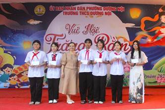 VUI HỘI TRĂNG RẰM – LAN TỎA YÊU THƯƠNG Tháng tám về mang theo hương cốm mới, gió heo may khẽ gọi mùa trăng rằm đoàn viên. Trong không khí ấy, trường THCS Dương Nội lại rộn ràng, lung linh sắc màu với chương trình “Vui hội trăng rằm” – một ngày hội đặc biệt dành cho các em học sinh thân yêu. Mở đầu chương trình là các tiết mục văn nghệ đặc sắc do chính các em học sinh biểu diễn, mang đến bầu không khí sôi động, vui tươi và đầy sắc màu cổ tích. Những giai điệu quen thuộc vang lên khiến bao trái tim như sống lại ký ức tuổi thơ hồn nhiên, trong trẻo. Không khí ngày hội càng thêm rộn ràng khi Chị Hằng và Chú Cuội xuất hiện giao lưu với các em học sinh mang đến những tràng cười sảng khoái và niềm vui ngập tràn cho các em nhỏ. Đặc biệt, trong chương trình, Cô Hoàng Thị Thu Trinh – Hiệu trưởng nhà trường và Cô Hoàng Thị Kim Oanh – Phó Hiệu trưởng nhà trường đã ân cần trao những phần quà ý nghĩa gửi tặng tới các em học sinh có hoàn cảnh khó khăn. Những món quà tuy nhỏ bé nhưng chứa đựng tình yêu thương, sự quan tâm, động viên để các em có một mùa Trung thu thật đủ đầy, trọn vẹn. Bên cạnh đó, phần thi bày mâm ngũ quả của các lớp là điểm nhấn rực rỡ, thể hiện sự khéo léo, tinh tế và tinh thần đoàn kết của tập thể học sinh. Mỗi mâm cỗ là một thông điệp gửi gắm tình yêu, sự sáng tạo và niềm tự hào của tuổi học trò.Trái cây, bánh kẹo đều được các em học sinh tự tay chuẩn bị và trang trí mang đậm màu sắc Trung thu. Chương trình khép lạitrong tiếng cười rộn rã của các em học sinh, trong niềm hạnh phúc và tình yêu thương được lan tỏa.Tết Trung thu không chỉ là ngày hội của thiếu nhi, mà còn là dịp để thầy trò cùng nhau sẻ chia, gìn giữ và bồi đắp những giá trị đẹp đẽ của tình người, tình thầy trò và tình bạn. VUI HỘI TRĂNG RẰM – LAN TỎA YÊU THƯƠNG Tháng tám về mang theo hương cốm mới, gió heo may khẽ gọi mùa trăng rằm đoàn viên. Trong không khí ấy, trường THCS Dương Nội lại rộn ràng, lung linh sắc màu với chương trình “Vui hội trăng rằm” – một ngày hội đặc biệt dành cho các em học sinh thân yêu. Mở đầu chương trình là các tiết mục văn nghệ đặc sắc do chính các em học sinh biểu diễn, mang đến bầu không khí sôi động, vui tươi và đầy sắc màu cổ tích. Những giai điệu quen thuộc vang lên khiến bao trái tim như sống lại ký ức tuổi thơ hồn nhiên, trong trẻo. Không khí ngày hội càng thêm rộn ràng khi Chị Hằng và Chú Cuội xuất hiện giao lưu với các em học sinh mang đến những tràng cười sảng khoái và niềm vui ngập tràn cho các em nhỏ. Đặc biệt, trong chương trình, Cô Hoàng Thị Thu Trinh – Hiệu trưởng nhà trường và Cô Hoàng Thị Kim Oanh – Phó Hiệu trưởng nhà trường đã ân cần trao những phần quà ý nghĩa gửi tặng tới các em học sinh có hoàn cảnh khó khăn. Những món quà tuy nhỏ bé nhưng chứa đựng tình yêu thương, sự quan tâm, động viên để các em có một mùa Trung thu thật đủ đầy, trọn vẹn. Bên cạnh đó, phần thi bày mâm ngũ quả của các lớp là điểm nhấn rực rỡ, thể hiện sự khéo léo, tinh tế và tinh thần đoàn kết của tập thể học sinh. Mỗi mâm cỗ là một thông điệp gửi gắm tình yêu, sự sáng tạo và niềm tự hào của tuổi học trò.Trái cây, bánh kẹo đều được các em học sinh tự tay chuẩn bị và trang trí mang đậm màu sắc Trung thu. Chương trình khép lạitrong tiếng cười rộn rã của các em học sinh, trong niềm hạnh phúc và tình yêu thương được lan tỏa.Tết Trung thu không chỉ là ngày hội của thiếu nhi, mà còn là dịp để thầy trò cùng nhau sẻ chia, gìn giữ và bồi đắp những giá trị đẹp đẽ của tình người, tình thầy trò và tình bạn.