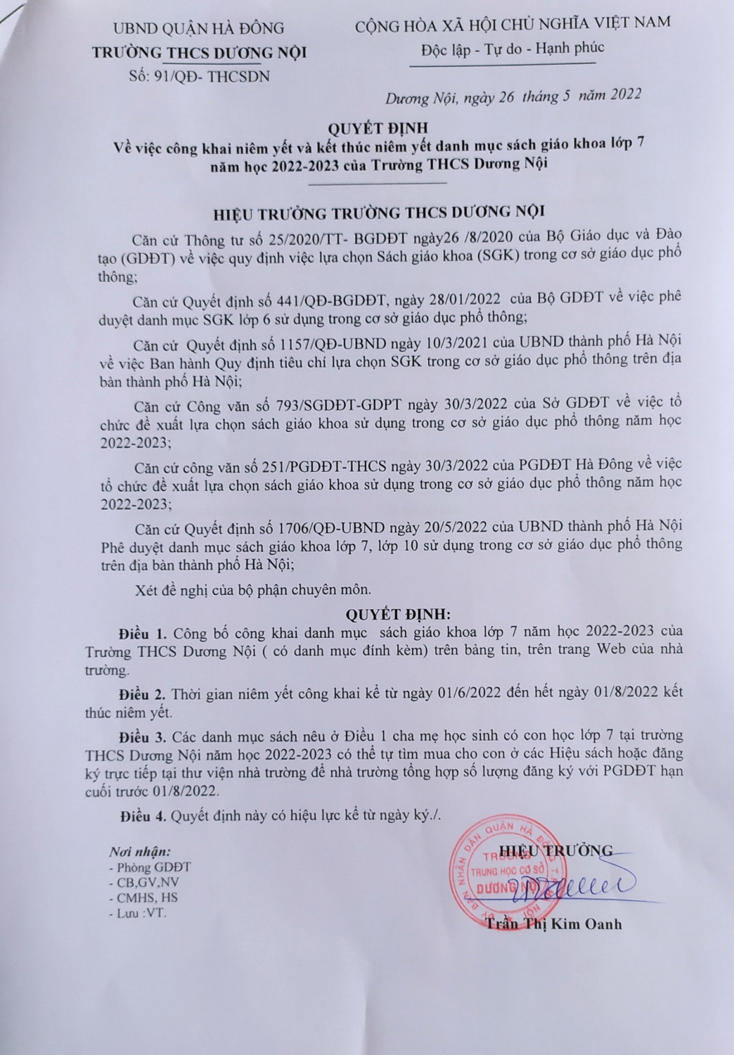Số: 241/TB-THCSDN